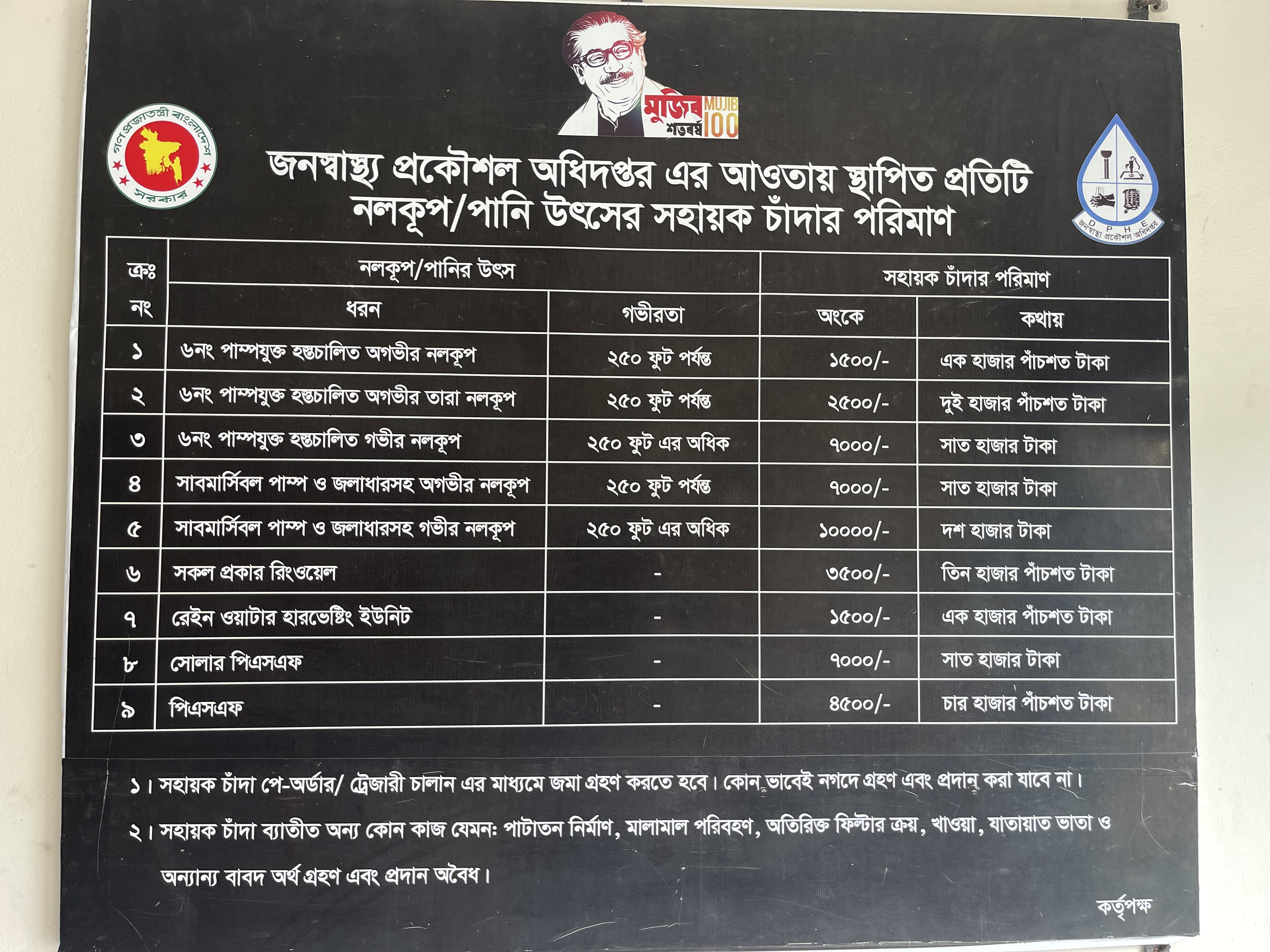 সেবার তালিকা